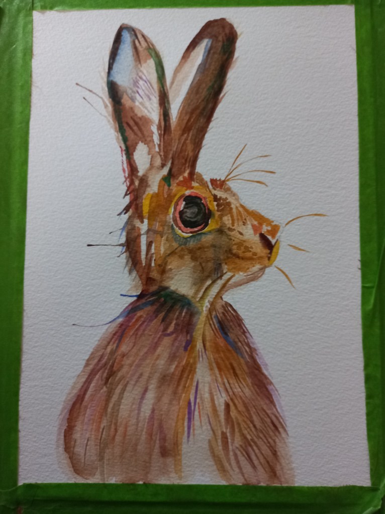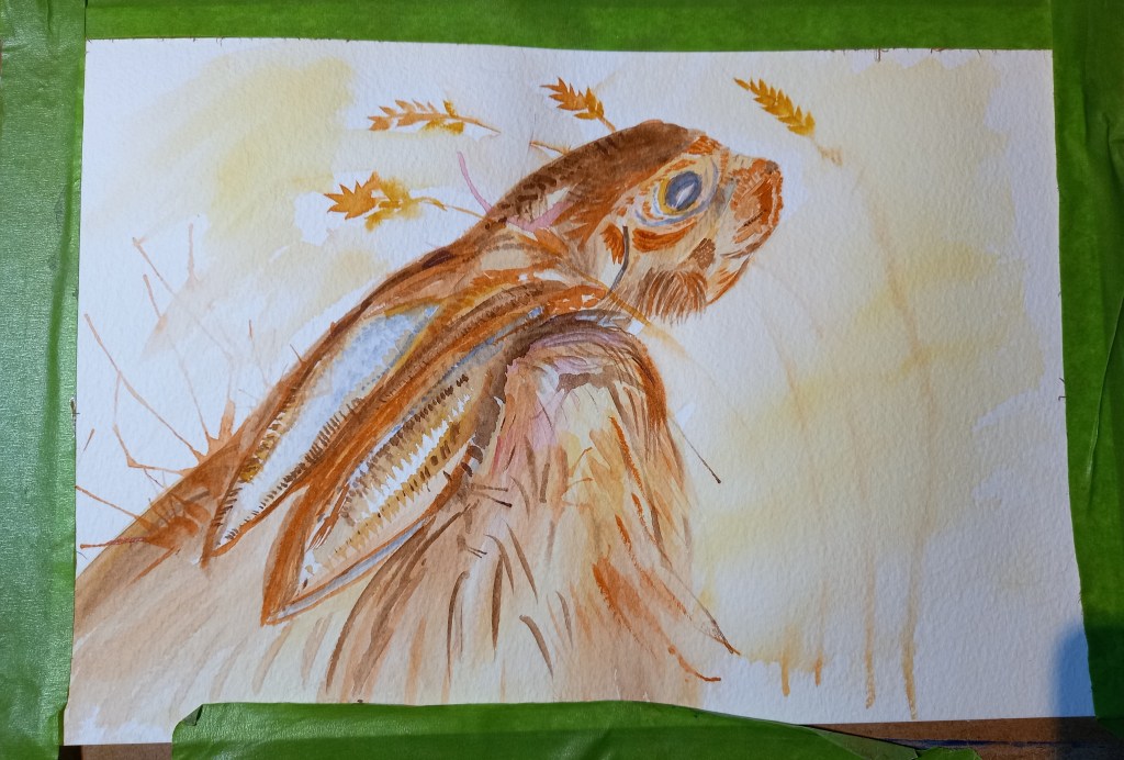 I seem to be enjoying painting watercolour hares. On watercolour paper.