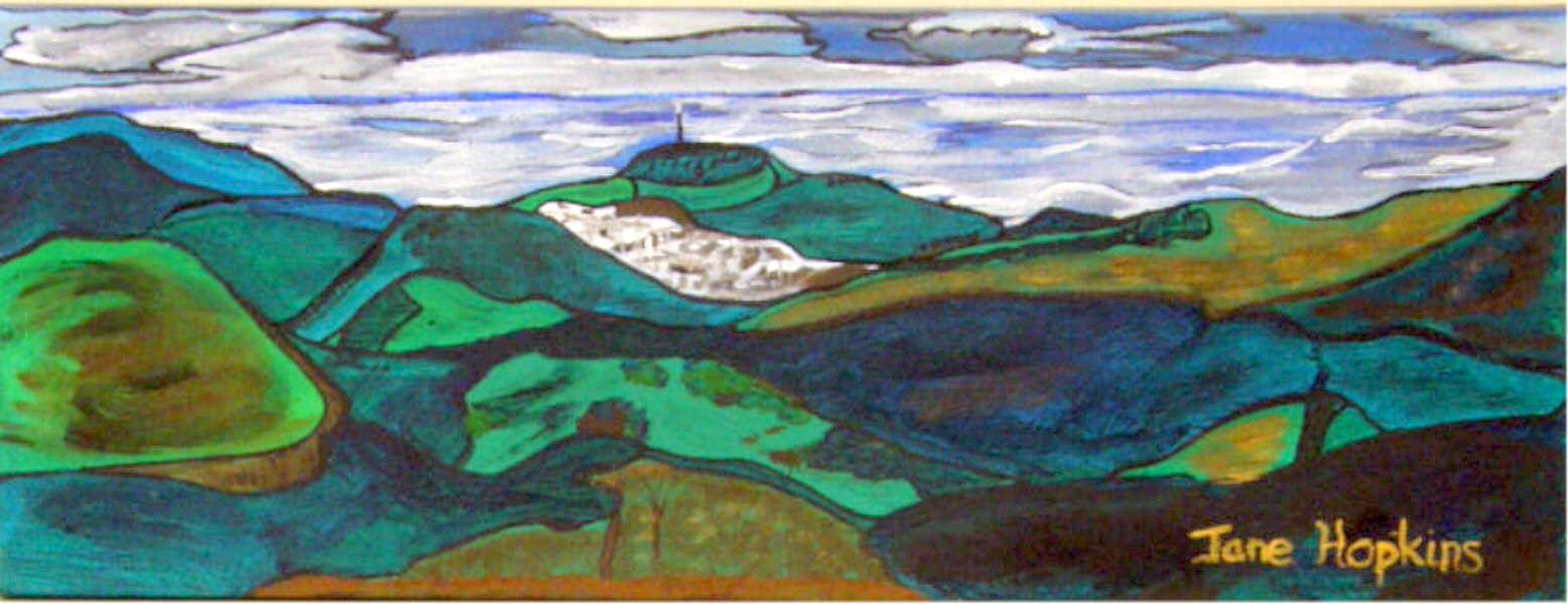 Acrylic on boxed Canvas, painted in situ. A beautiful Summer evening’s view. Glittering sea in the sunshine.