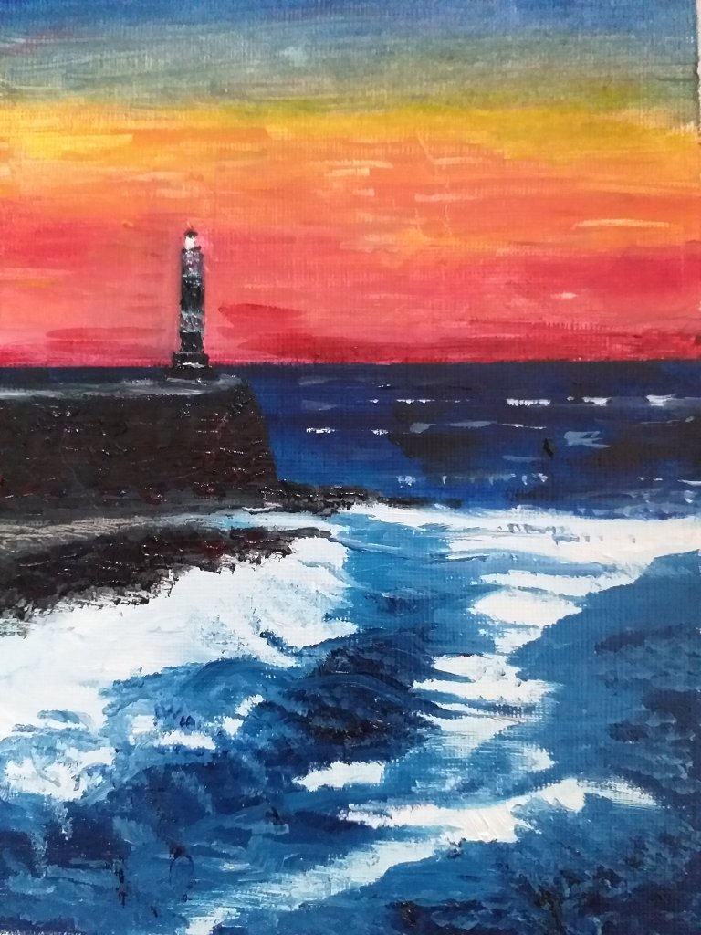 Aberystwyth, Art Club, harbour, oils, Painting, seaside., seaside. Wales., sunset